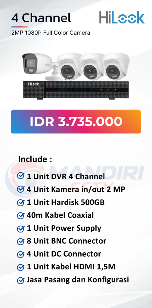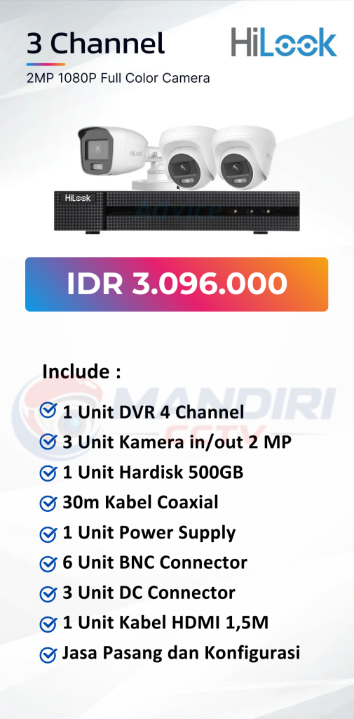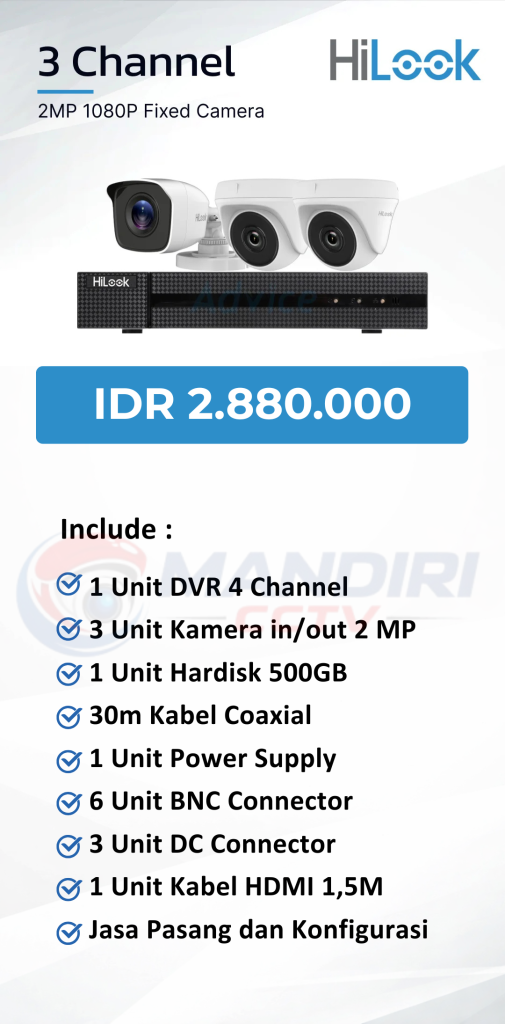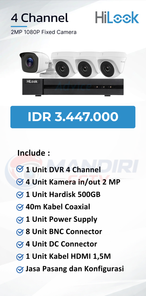 - 3. Garansi DVR/NVR dan kamera 2 tahun, harddisk 1 tahun serta garansi instalasi 1 bulan.