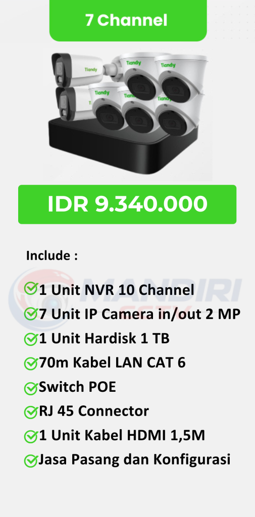 - 3. Garansi DVR/NVR dan kamera 2 tahun, harddisk 1 tahun serta garansi instalasi 1 bulan.